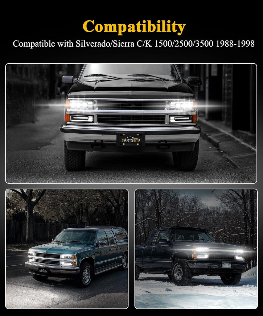 - [Multi Functions] Start-up Animation, DRL, High/Low Beam, Sequential Turn Signal. If any lights don’t work, flip the plug 180° and reconnect it. NOTE: Extra Side Markers are ONLY for 1994-1998 C10 C/K Series 1500 2500 3500 Silverado/Tahoe/Suburban