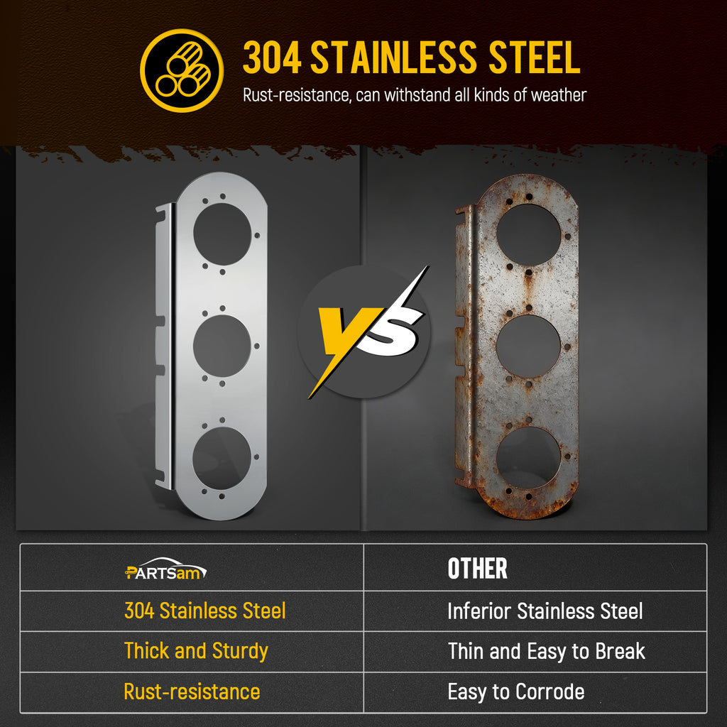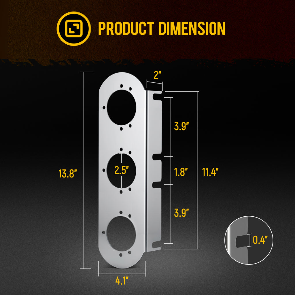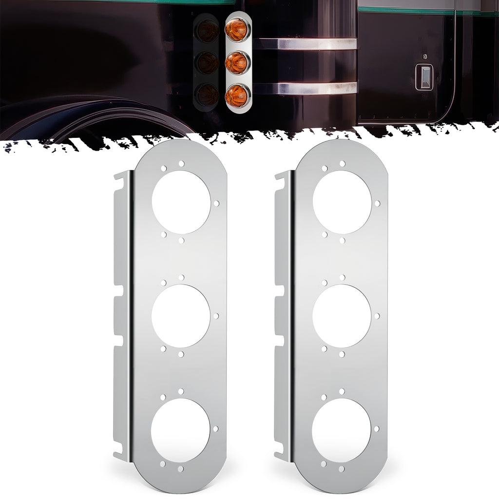 Partsam 1 Pair 14“ Front Watermelon Air Cleaner Light Bar Brackets Compatible with Peterbilt Kenworth Freightliner, 3 Watermelon Light Cut-Outs, 304 Stainless Steel, Light Not Include