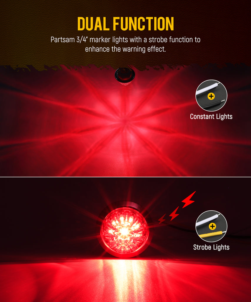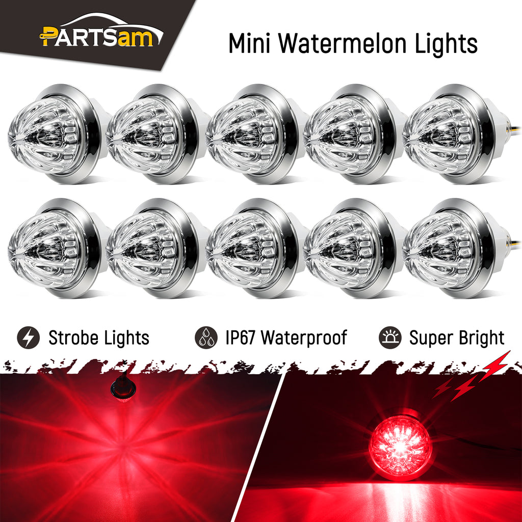 Partsam 10 Pcs Red Watermelon Side Marker LED Dual Function Strobe + Marker Lights, 12V Side Clearance Tail Griller Flash Lights Turn Signal Warning Waterproof Light for Trailer Truck RV