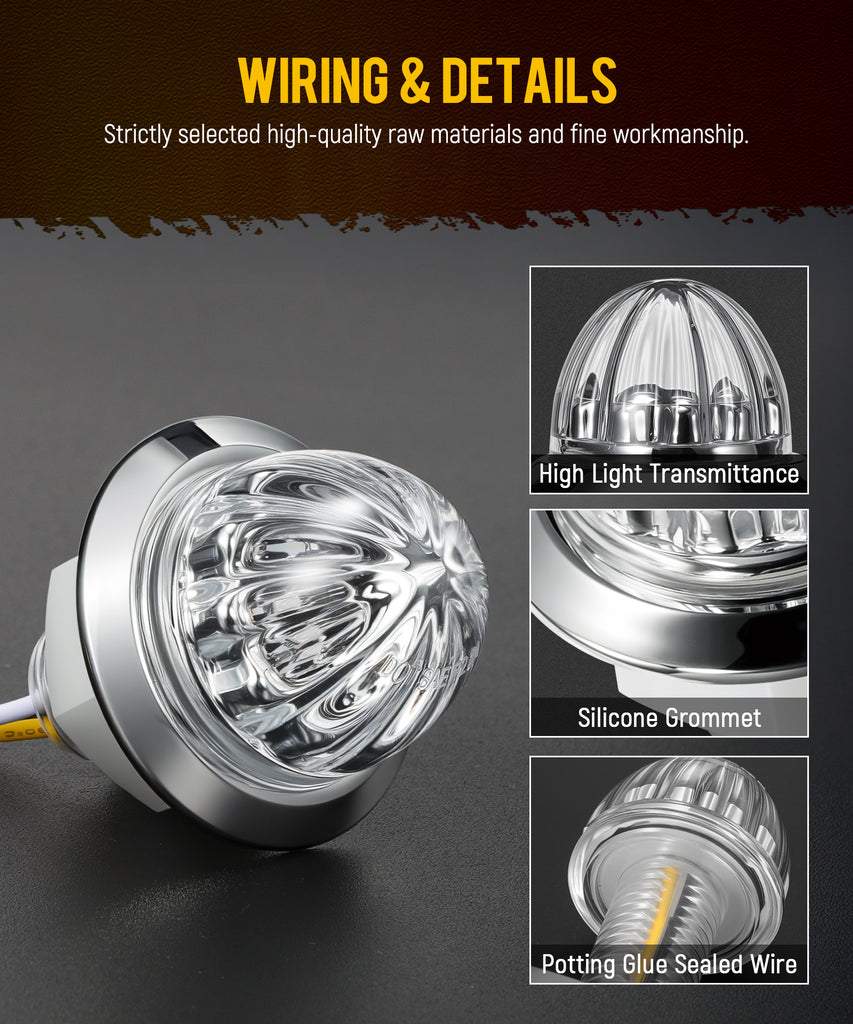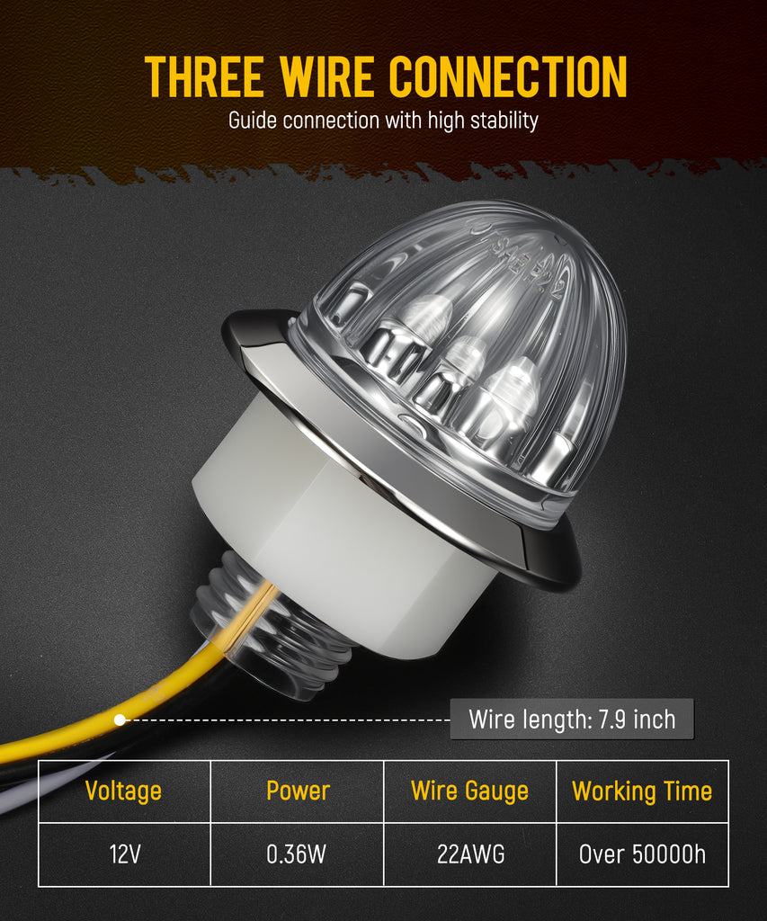 - 【Easy Installation】 Uses a three-wire hard wire connection. The white wire is ground, the black wire is for low-brightness side marker lights, and the yellow wire is for high-brightness turn signals.