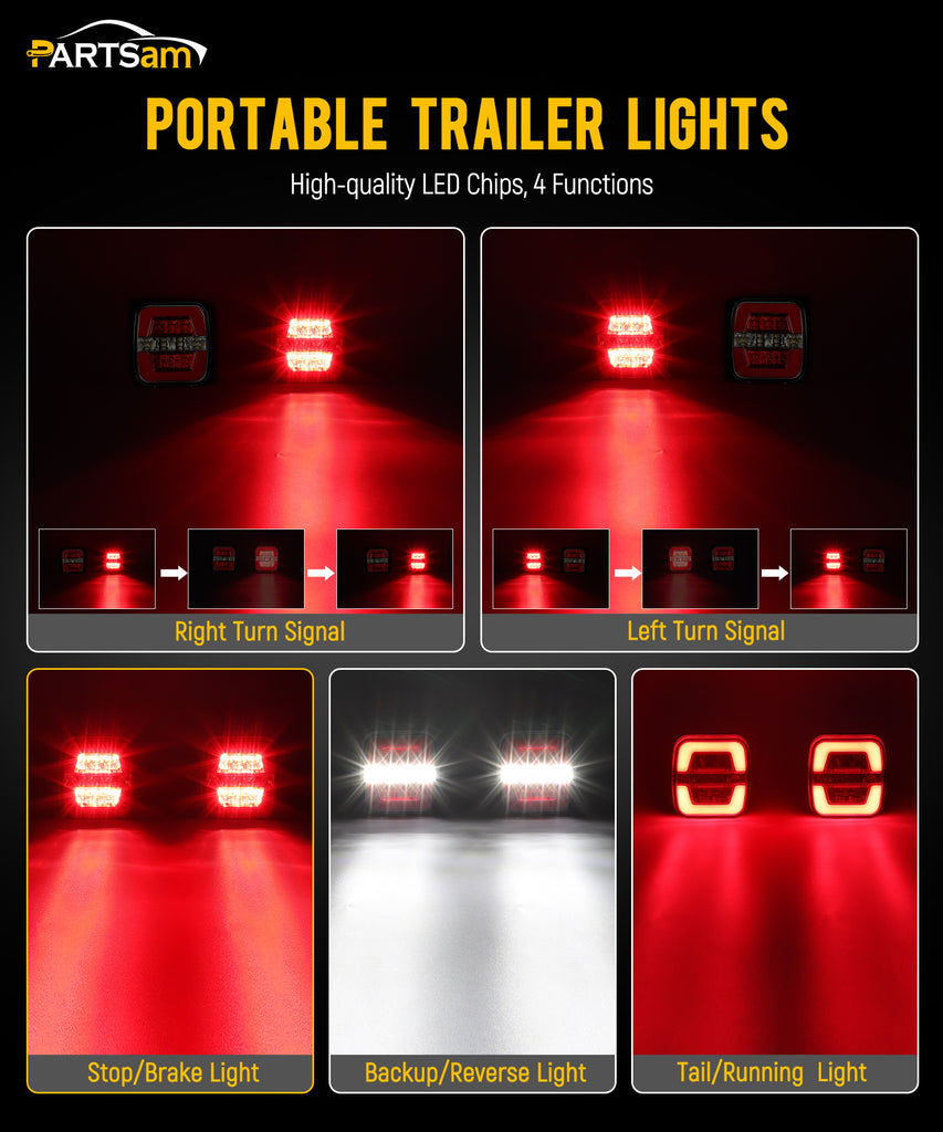 - [Wireless Magnetic Trailer lights] Includes 26 LEDs with 22 red lights for tail/stop/turn signals and 4 white lights for backup/reverse lights; designed for enhanced visibility while towing